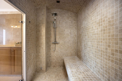 The villa features underfloor heating, hot and cold A/C, tempered glass windows throughout, and solar panels for both water and underfloor heating. There are two lifts: one from the entrance to the garage, and another to the rooftop terrace with jacuzzi. Outdoors, you’ll find an infinity pool, children’s pool, extensive terraces, and a large outdoor kitchen.