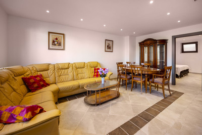 The lower level, accessible by stairs or lift, includes a second spacious living area with rustic bar, wine shelving, and billiard table, two generous en-suite bedrooms with garden and pool access (one with Turkish bath), a guest WC, large laundry room with kitchenette and storage, and a cinema room with surround sound and theatre seating.