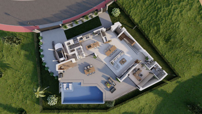 With the possibility of including a sauna or barbecue area with a kitchen, this villa offers a versatile space adaptable to your preferences. The spacious entrance allows parking for up to 5 cars, or even the option of converting part of the space into a private gym. Furthermore, there is the possibility of incorporating up to 5 or 6 bathrooms, catering to the individual needs of each owner.