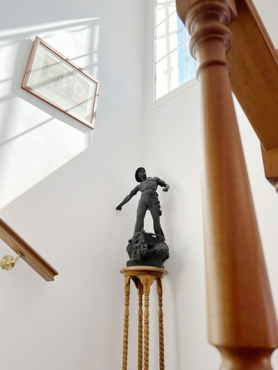 Marble staircase leads to second floor.