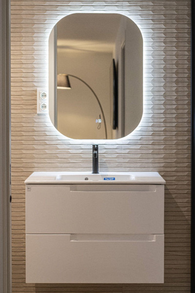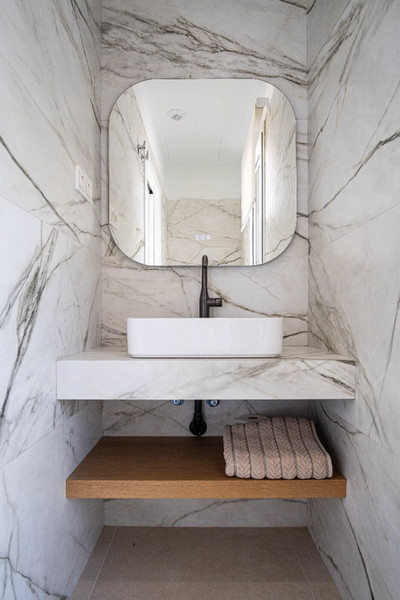 Upper floor (entrance): dedicated to the sleeping area, featuring the elegant master bedroom along with two additional bedrooms, all with en-suite bathrooms.