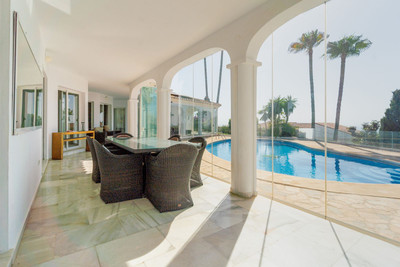 This stunning villa is situated on a large and private plot offering breathtaking panoramic views of the Mediterranean.