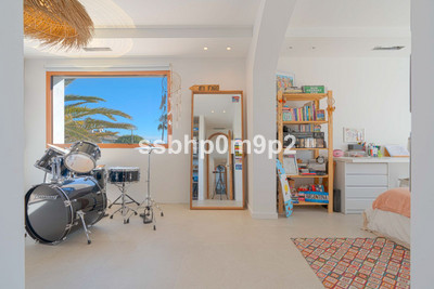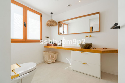 The main suite features a high-end bathroom with dual facing washbasins, two independent WC areas and a spacious walk-in shower. On the upper floor, there are four additional bedrooms, all bright and spacious, each with its own en-suite bathroom.