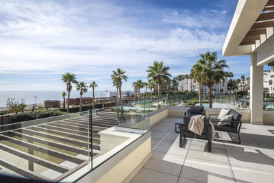 This modern, top-quality villa is located in Velaya Gardens, a prestigious frontline beach development on the New Golden Mile, just a short distance from Estepona town center via the new Paseo.