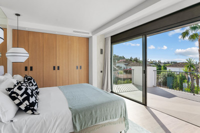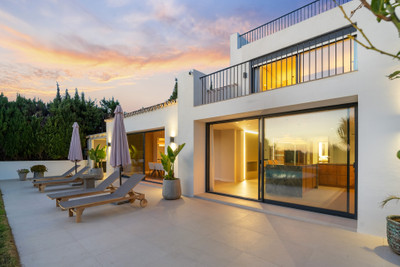 Nestled in the heart of Nueva Andalucía, Villa Vanessa is a stunning Scandinavian-style villa where modern elegance meets timeless design. Benefiting from an ideal southwest orientation, the villa enjoys all-day sunlight and unobstructed panoramic views over the prestigious Golf Valley, complemented by meticulously landscaped and fully private gardens. The main living area is designed for modern luxury living, featuring impressive double-height ceilings, expansive floor-to-ceiling glass doors, a stylish fireplace, and an upscale chef’s kitchen equipped with premium marble countertops and top-of-the-line Miele appliances. Offering four spacious bedroom, the property includes beautifully designed master en- suite bathroom, generous walk-in wardrobe, and convenient direct garden access from the lower level.