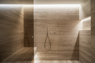 Inside, the home is defined by an elegant selection of materials, including Chevron wooden flooring that brings warmth and sophistication to every space. The Danespan kitchen combines clean design with functionality, creating a welcoming focal point for daily living and entertaining. The villa offers five spacious bedrooms, thoughtfully distributed to ensure comfort for family and guests. The wellness area features an indoor pool, sauna, and steam room, creating a private spa experience within the home.