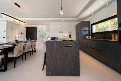 Nestled in a private cul-de-sac right by the renowned Los Naranjos Golf Club, this contemporary villa offers a perfect blend of modern comfort and prime location. Just an 8-minute drive to the beach, it's ideal for those seeking peace without losing access to Marbella’s vibrant lifestyle.
