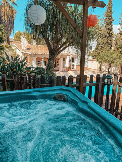 The exterior is one of its great attractions: a beautiful garden with numerous fruit trees, a large private swimming pool, and a jacuzzi for 6 people, perfect for enjoying the Mediterranean climate.