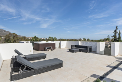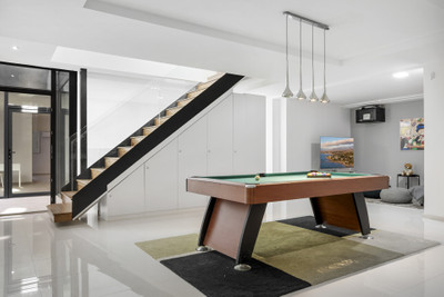 Designed for both leisure and entertainment, the villa features a sleek game room and a spectacular rooftop terrace with Jacuzzi—perfect for soaking up the sun while gazing over sweeping golf course views. Outside, manicured gardens frame a sparkling private pool and sun loungers, while a covered terrace with a barbecue sets the scene for unforgettable alfresco evenings. Ample private parking ensures every arrival is effortless.