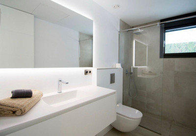 A stunning modern villa set on 1,269 sqm plot in the most sought-after area of Nueva Andalucia. This luxurious property offers five spacious bedrooms and bathrooms, designed with clean lines and contemporary finishes throughout. The villa features a beautiful private swimming pool and extremeley private landcasaped garden that opens onto trabnquil views of a lake located directly opposite the garden, creating a rare sense of privacy and calm. Modern, bright, and refined, this exceptional home is ideal fot those Marbella premier locations.