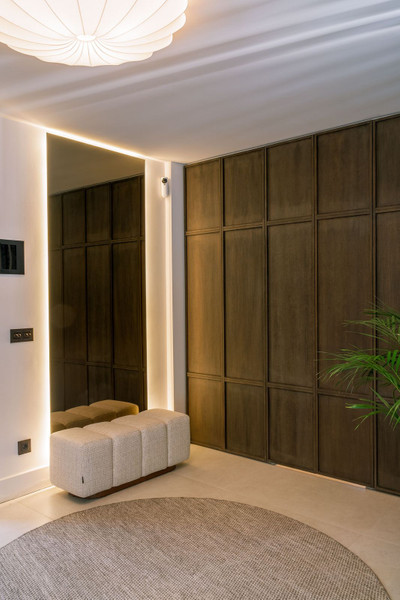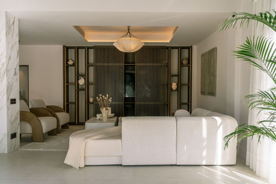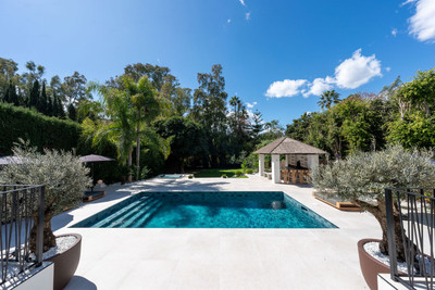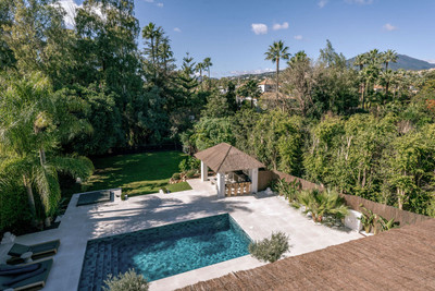 Welcome to this stunning villa in the heart of Nueva Andalucía, where privacy and modern convenience seamlessly blend together. Recently renovated in the serene Scandinavian-Japandi style, this exceptional home offers an elegant retreat that prioritizes comfort and tranquility.