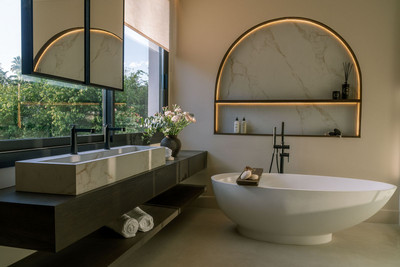 Inside, you’ll find a harmonious use of natural materials and calming colors, creating an inviting atmosphere that promotes relaxation. The spacious layout features five beautifully designed bedrooms and six modern bathrooms, making it an ideal space for families and those who love to entertain.