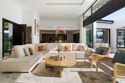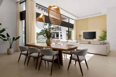 This modern architecturally designed villa in Marbella offers exceptional light, space, privacy and connectivity, set in a prime location just minutes from Los Naranjos Golf Club in Nueva Andalucía. Positioned on a flat, south-facing plot, this outstanding property in Marbella has been designed for contemporary living, with seamless indoor-outdoor flow and a strong focus on comfort, quality and entertaining.