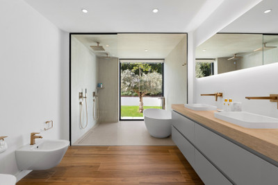 A modern home automation system controls the entire home. It includes underfloor heating throughout, hot and cold air conditioning, Sonos indoor and outdoor sound system, advanced security and alarm systems, solar panels and high-specification thermal and acoustic insulation. These features ensure strong energy efficiency and low day-to-day running costs.