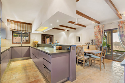 Outside, a spectacular wrap-around terrace encircles the home, offering breathtaking views at every turn. The meticulously landscaped gardens feature a large swimming pool surrounded by mature vegetation, centuries-old olive trees, and fruit trees, creating an ideal setting for relaxation and outdoor entertaining.