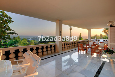 This extraordinary detached villa in Río Real, Marbella, offers a rare blend of classic Andalusian elegance and exceptional potential for modern transformation. Set atop a private hill, it enjoys uninterrupted views of the Mediterranean Sea, lush golf courses, and rolling green valleys—creating a serene yet captivating backdrop. With a vast plot of 5,775 m² and 2,600 m² of built space, the estate presents an outstanding lifestyle opportunity for discerning buyers seeking privacy, luxury, and architectural versatility.