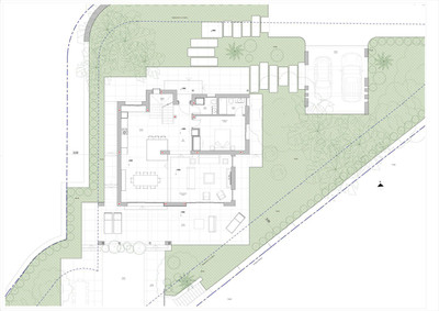 • Expansive Interiors: Floor-to-ceiling windows flood the open-plan living spaces with natural light, offering unobstructed views of the landscaped gardens.