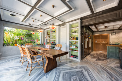 The existing residence is thoughtfully distributed across 460m² of built space, with 264m² of interior living and 331 m² of terraces designed to maximise outdoor living.
