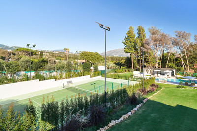 At the heart of the property is a private heated pool, surrounded by a stylish lounge area. The villa also boasts a full-sized private tennis court, multiple outdoor dining areas, both covered and uncovered terraces and fully equipped outdoor kitchen & bbq, ideal for entertaining.