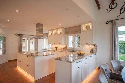 The villa also features a custom-made kitchen with Miele appliances, as well as practical spaces including a laundry room, technical room, gardener’s room, storage areas, and wine cooling room, all thoughtfully designed.