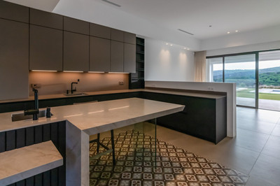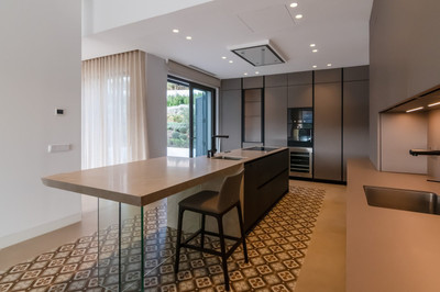 With approximately 1,070 m² of built area on a 4,802 m² plot, the villa features five en-suite bedrooms, each designed for privacy and tranquillity. The expansive, light-filled living room serves as the heart of the home and flows seamlessly onto landscaped terraces and gardens, perfect for relaxation or entertaining. A separate, fully equipped kitchen and dining area with top-of-the-line finishes ensures every gathering is a refined experience.