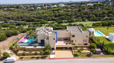 This one-of-a-kind villa is located in Sotogrande, in the South of Spain, close to Marbella, Malaga and Gibraltar. It is set in a gated residential complex at the end of a cul-de-sac and at the entrance of the world renown Club Reserva de Sotogrande Golf Course. A five-minute drive will bring you to the beach of the Mediterranean Sea and all of its entertainment. Stores, shopping malls and supermarkets are close by. The Málaga International Airport is over an hour's drive away.