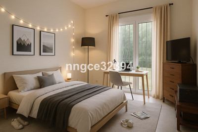 A spacious en-suite with garden access, easily reimagined as a home gym, art studio, or children’s playroom.