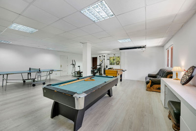 Upstairs, the master suite provides privacy and comfort, complete with an ensuite bathroom and two terraces, one of which offers a partial sea view. The lower floor introduces flexibility, here you will find an additional bedroom and a spacious open area with endless possibilities. It can be transformed into a home cinema, a gym, a spa, or a games lounge. From this level, a set of stairs takes you down to the lower garden and pool area. Here you can enjoy both sunlight and privacy, with shaded dining and lounge spaces that are perfect for long summer evenings surrounded by friends and family.