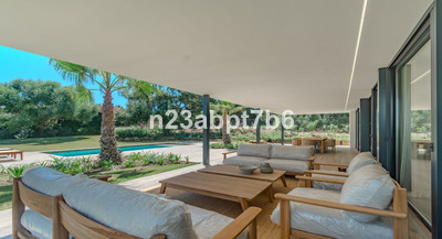 Outdoors, the villa boasts a private swimming pool, beautifully landscaped gardens, and generous terraces—perfect for outdoor entertaining and relaxation in Sotogrande’s privileged climate.