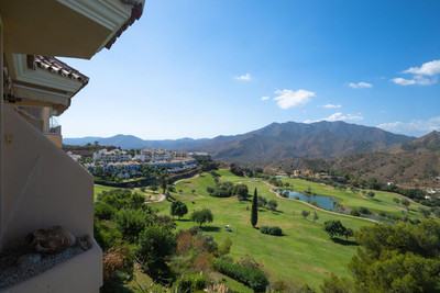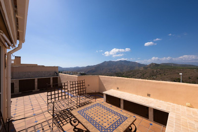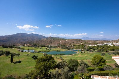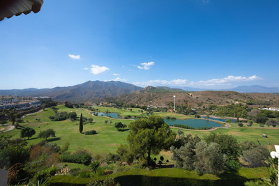 Stunning duplex in Alhaurin Golf with exceptional views of the golf course and in an impeccable condition. The property is very spacious and consists of a large living-dining room with a fireplace opening onto a fabulous and spacious fully glazed terrace with spectacular views of the course. There is also a large fully equipped kitchen as well as two double bedrooms, one en suite and with direct access to the terrace as well as a second bathroom. Upstairs there is a third bedroom and another bathroom and an additional bonus is a second summer lounge ideal for family gatherings. From here we access to a beautiful terrace with a barbecue area and unbeatable 360º views. Also there is a parking space, storage room, swimming pool and communal gardens. A property with many possibilities and great potential.