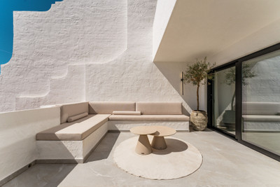 Contemporary duplex for sale in the exclusive Las Colinas de Marbella community in Benahavís, offering three bedrooms and three bathroom. Designed with both style and function in mind, this home brings together modern living spaces with panoramic sea and valley views, all within a secure gated environment. With a built area of generous proportions and expansive terraces, the property delivers a combination of interior comfort and outdoor living that is ideal for either a permanent residence or a holiday retreat.