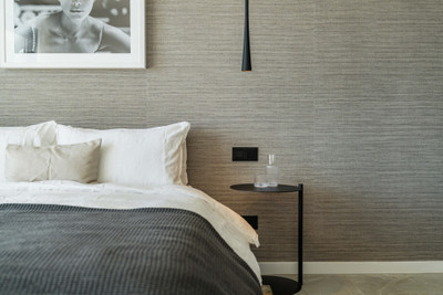 The property benefits from architectural input by a well-known designer and has been recently renovated by Casa Renovo, further upgrading finishes and materials. The interiors are currently styled with elegant wooden furnishings that highlight warmth and quality, complementing the sleek architecture. While these pieces are not included in the sales price, they have been carefully curated to match the home’s aesthetic and can be acquired separately if desired. Outdoors, a generous terrace accommodates an al fresco dining area, an outdoor kitchen, and a built-in barbecue, all set against the backdrop of the valley and the sea. Communal facilities include a large swimming pool and landscaped gardens that contribute to the sense of privacy and community.