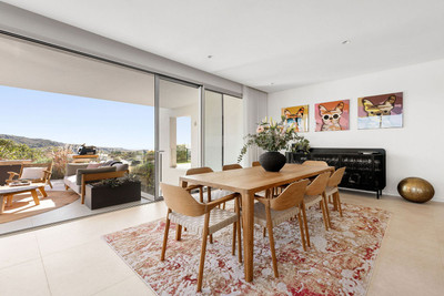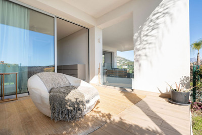 A great opportunity to buy this unique ground floor corner duplex apartment in the well-known Marbella Club Hills Development. Due to its corner position the apartment enjoys privacy with amazing sea and mountain views. The property has an open plan kitchen/living-dining room with sliding doors leading you out onto the terraces and private garden. On the same floor you have the master bedroom and due to the original design, an extension of approx 40m2 has been added where the current owners enjoy watching tv and a home office has been set up. On the lower floor you have the 2 spacious guest ensuite bedrooms both with access to the main terrace through the stairs. The apartment comes with 2 parking spaces and an oversized storage room. The development is completely gated, the pool area is very well equipped with a gym, sauna, changing rooms and even a boule court. Further development includes more sports facilities. A one-of-a-kind property that has to be seen.