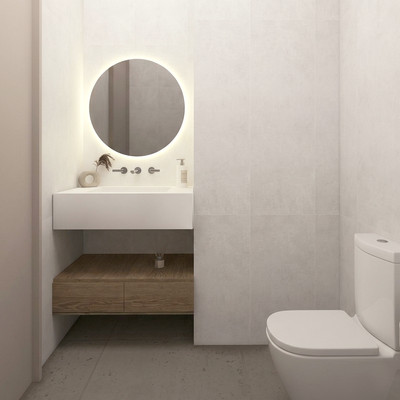 – Porcelain stoneware flooring in living areas and bathrooms