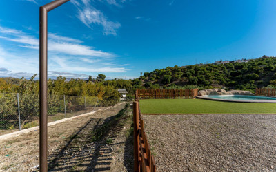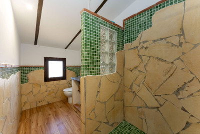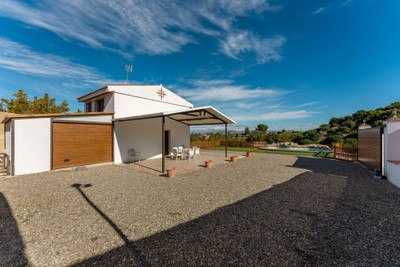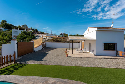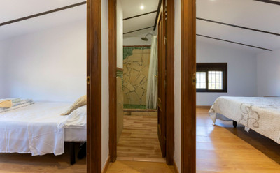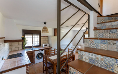The house is distributed over 2 floors and offers and open plan kitchen-living room, 3 bedrooms, (2 of the bedrooms are located are located on the 1st floor and offer vaulted ceilings) 2 bathrooms and a small garage. There is AC in the master bedroom and living room.