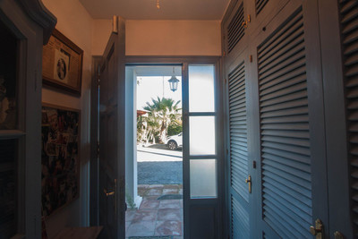 Access to the property is via an electric gate, leading to a spacious parking area with room for several vehicles, part of which is covered. Upon entering, you are welcomed by a well-maintained mature garden with lawn and a variety of flowers, creating a pleasant and private setting.