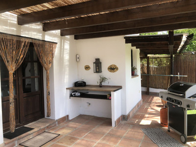 The property enjoys as well a separate wooden guest house of 26 sqms distributed in salon with integrated kitchenette, 1 bedroom and 1 bathroom and outside terrace. The wooden roof has an irrigation system. Carport for 2 cars and lots of uncovered space of parking.