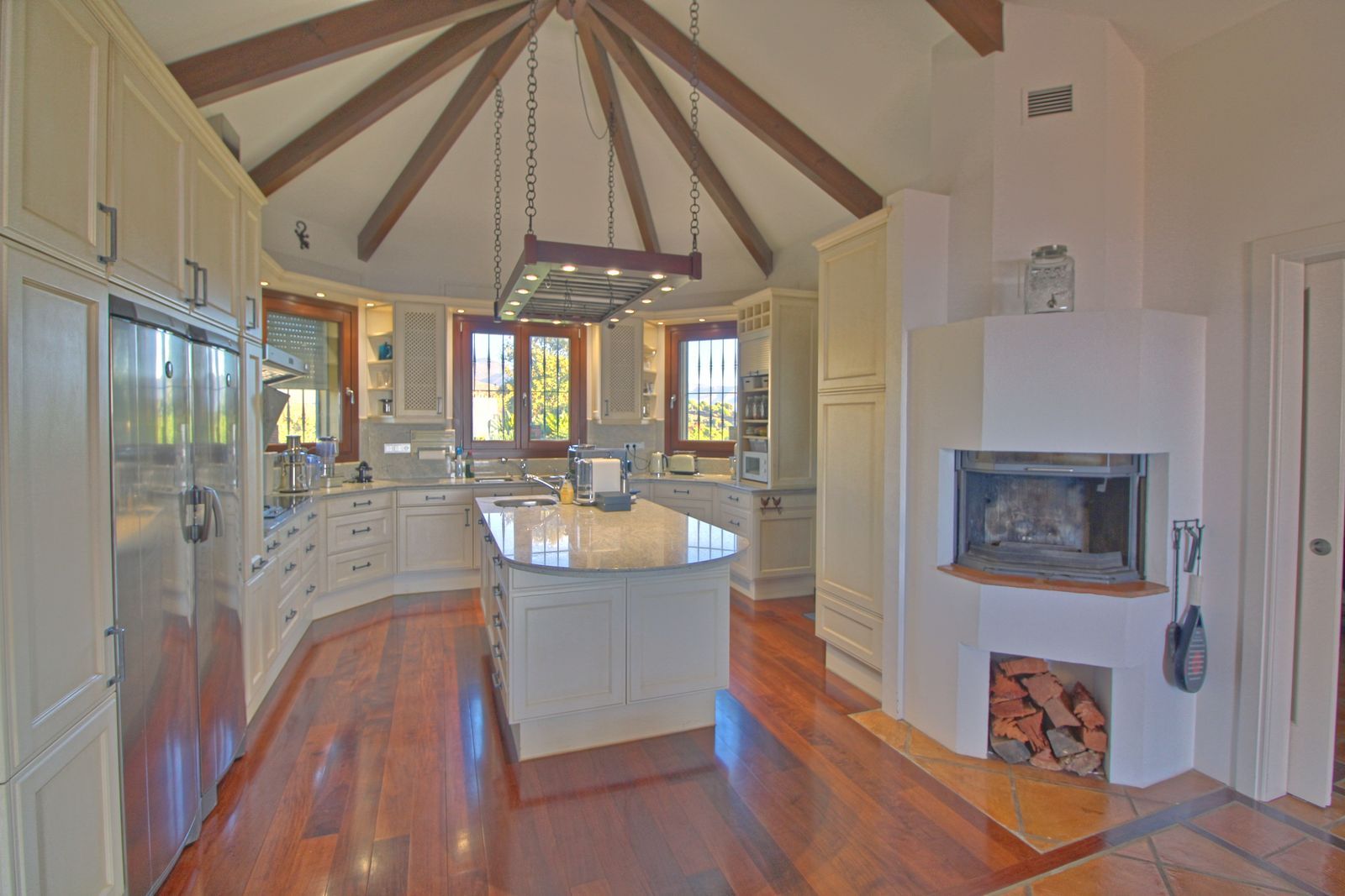 With a swimming pool, sauna, games room, and basketball court, there's no shortage of leisure options. Inside, five lovely bedrooms, artisan-tiled beautiful bathrooms and underfloor heating throughout the house offer year-round comfort.