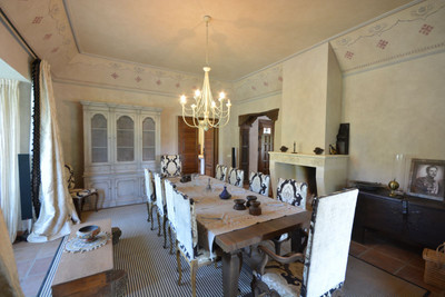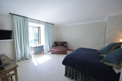 The actual distribution has, on the ground level: entrance gardened patios with water features and ancient olive trees, entrance hall with really high ceiling, wooden beams and a majestic staircase that leads up to a gorgeous master bedroom, dressing room and bathroom, plus like a sitting area overlooking the large living room. There is also a very spacious cinema room, a large dinning room with fire place and a large kitchen next to it. On the other side of the hall there are another three double bedroom suites. All this area access a large covered and open terrace which overlooks the garden, pool and forest. This is where the barbeque and outdoor dinning is.