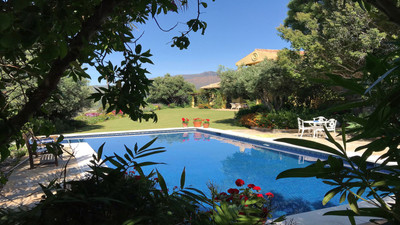Immerse yourself in the captivating charm of this refined utterly peaceful country home, affording absolute privacy and breathtaking panoramic views, which unfold before you as far as the sea and the Sierra de Ronda. The beach, several golf courses, riding stables and extensive shopping facilities are only a 10-minute drive away. Embrace the timeless elegance of this Cortijo style country house, evident in the spacious rooms bathed in natural light and filled with a sense of effortless sophistication.