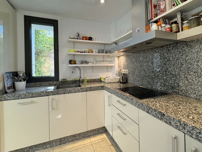 This elevated ground floor property has been built to the highest German standard : travertine aged floors, travertine fire place. Stone basins and shower base in bathrooms, very large double-glazed windows with electric shutters in living area. Gaggenau kitchen appliances. Large dressing room area in master bedroom. Underfloor heating throughout as well as central AC hot and cold system.