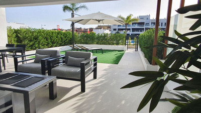 This stunning ground-floor apartment in Los Miradores del Sol Phase I perfectly combines contemporary luxury with Mediterranean indoor-outdoor living on Estepona’s exclusive New Golden Mile. Offering 92 m² of elegant interior space and an impressive 84 m² of private terraces and gardens, it’s ideally located just a short walk from the beach, shops, and restaurants.