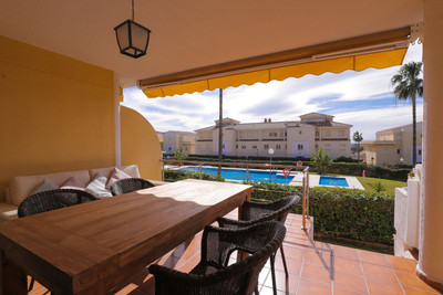 A very rare opportunity to acquire a large, bright, corner, ground-floor apartment overlooking the gardens and swimming pool, in a preferred location at Urb. Las Mimosas Golf de Cabopino.