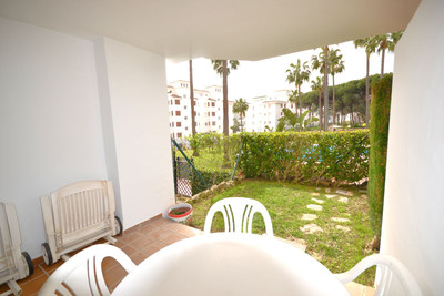 A beautifully presented west-facing 1-bedroom ground floor apartment with private garden, located in one of Calahonda’s most sought-after beachfront communities.