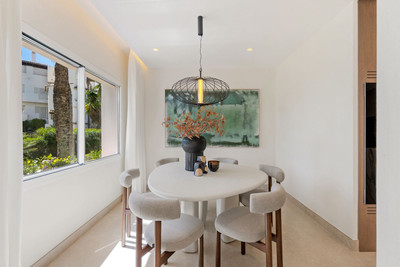 This is a beautifully renovated frontline beach, three-bedroom, two-bathroom apartment with nice sea views. It offers a stylish and comfortable living experience in one of Estepona’s most desirable coastal areas. Every detail of the 137 m² interior has been completely updated with a fresh, contemporary design that combines high-quality materials and modern finishes. Bright and welcoming, the apartment is fully and tastefully furnished, move-in ready and perfectly suited for luxurious beachfront living. A spacious 20 m² terrace extends the living space outdoors, providing a private spot to enjoy the tranquil surroundings.