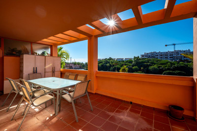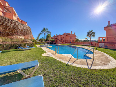One-level apartment consisting of 3 double bedrooms, together with 3 bathrooms a large L shape terrace with the bonus of half being covered and the other half open to be able to enjoy the sun all day long which you has limited sea views. Property comes with hot/cold air conditioning, underground parking space, lift to the apartment, marble floors throughout & is being sold fully furnished. Well-kept community gardens, gated complex with a community pool. The apartment is situated in el Chaparral, located near the shops and public transport, walking distance to the beach. With a little bit of tender loving care this property could be made into a beautiful family home. Well worth a viewing, keys in the office!
