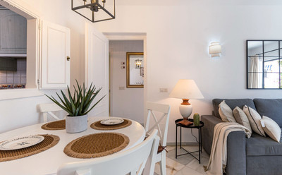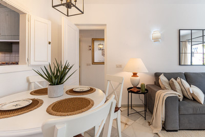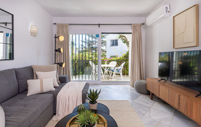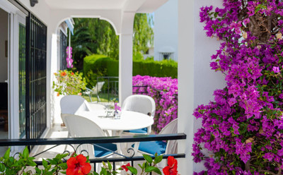 Exquisitely positioned corner status one level elevated ground floor apartment with a high interior specification fully furnished with modern furniture, offering access to a spacious immaculately maintained tropical garden situated within a prestigious community in El Paraiso Alto Benahavis, designed within tall palm residents gardens, encapsulated by the surrounding El Paraiso hills and mountains an area of outstanding natural beauty and tranquillity consistently chosen by industry professionals as a highly recommended golf, vacation and residential choice offering direct access from the exclusive community car park onto the famous El Paraiso 18 hole golf course green.