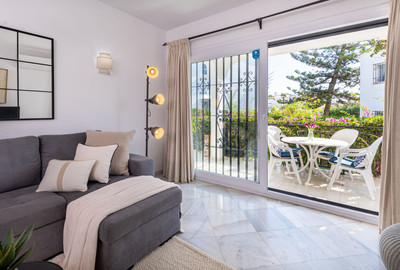 Excellent opportunity to acquire a one level garden apartment with a spacious storage room/Andalucian courtyard in El Paraiso Cortes Del Golf, Benahavis.