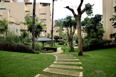 Ground floor apartment for sale in the exclusive Bahía de la Plata urbanisation in Estepona, with a parking space and storage room included.
