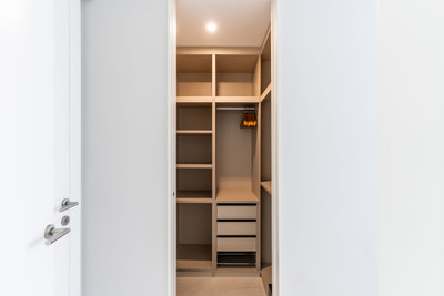The state-of-the-art kitchen is fully fitted with premium Gaggenau appliances, including a double refrigerator and freezer, and is beautifully integrated into the bright, open-plan living area. Floor-to-ceiling glazing allows the interior spaces to flow effortlessly onto the expansive terrace and private-use garden, offering an exceptional indoor-outdoor living experience.